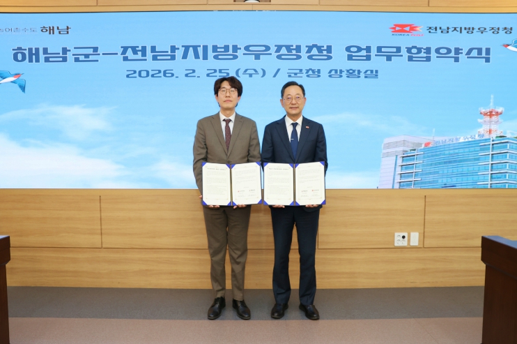 [뉴스노크=김인호 기자] 전남지방우정청(청장 김동주)은 25일 해남군청에서 해남군(군수 명현관)과 지역 농·수·축산물 판로 확대를 위한 업무 협약을 체결했다고 밝혔다.