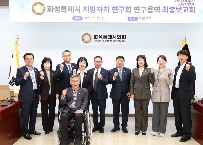 오문섭 대표의원은 “이번 연구용역 최종보고회를 통해 화성특례시에 걸맞은 재정 운영 체계와 정책 방향을 구체화할 수 있었다”며 “지속적인 연구와 역량 강화로 지방의회의 정책 기능을 한층 높이고, 시민이 체감할 수 있는 실효성 있는 정책 대안을 마련하는데 최선을 다하겠다”고 말했다.