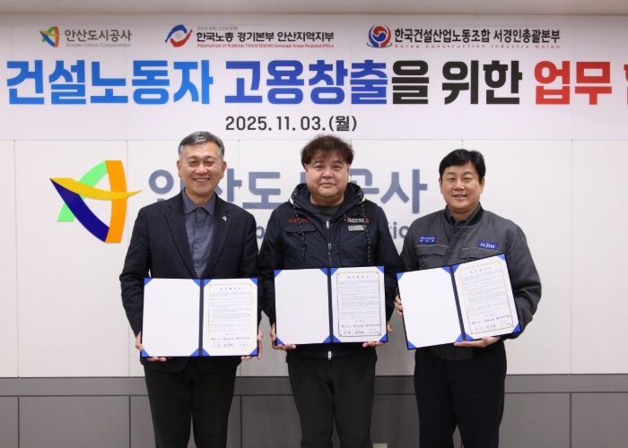 [뉴스노크=김인호 기자] 안산도시공사는 한국노총 경기본부 안산지역지부, 한국건설산업노동조합 서경인총괄본부와 업무협약을 맺었다고 4일 밝혔다.