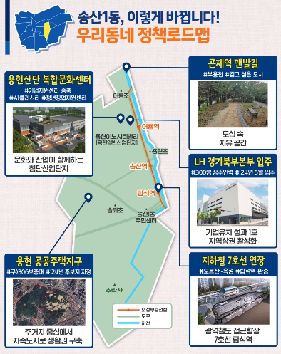 [뉴스노크=김인호 기자] 의정부시는 시민 생활과 밀접한 행정·인프라·복지·문화 등에 대한 정보를 지역 단위로 정리한 ‘우리동네 정책로드맵’ 송산1동편을 9일 발표했다.