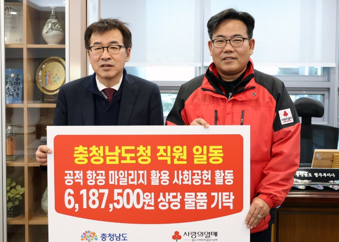 [뉴스노크=김인호 기자] 충남도가 공적 항공마일리지를 활용해 마련한 생활용품을 충남사회복지공동모금회에 기탁하고 따뜻한 지역사회 만들기에 동참했다.