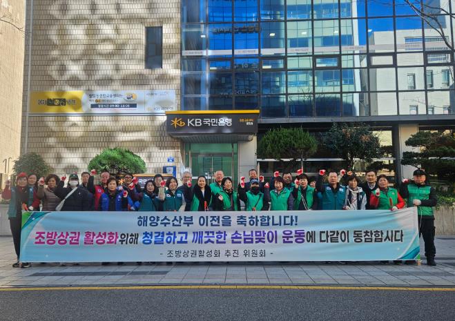 [뉴스노크=김인호 기자] 부산 동구 범일2동은 지난 12월 18일 해양수산부 임시청사 개청을 앞두고 조방상권 활성화를 위한 손님맞이 도시환경정비를 실시했다.