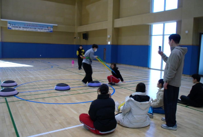 『신체활동을 통한 기본운동능력 향상 및 협동, 규칙을 통한 사회성 증진』이라는 슬로건으로 운영 중인 겨울계절학교는 체육전문강사의 지도 아래 코퍼밴드 놀이와 플로어볼에 대한 기본기를 다지고, 팀 간 경기를 통해 실전 경험을 쌓아 학생들의 학교생활 적응력을 향상시키고자 했으며, 실제 평소 몸을 잘 움직이지 않던 학생들도 적극성을 보이며 하루하루 눈에 띄게 운동 실력을 성장시키도록 운영한다.