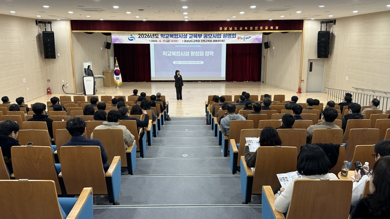 [뉴스노크=김인호 기자] 경상남도교육청은 19일 경상남도교육청 진로교육원에서 지방자치단체와 교육지원청, 학교 관계자 100여 명을 대상으로 ‘2026년도 학교복합시설 교육부 공모사업 설명회’를 열었다.