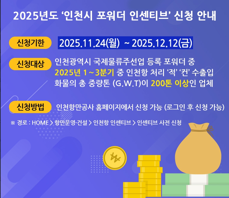 | ▲ 2025년 인천시 포워더 인센티브 지원기업 모집 |