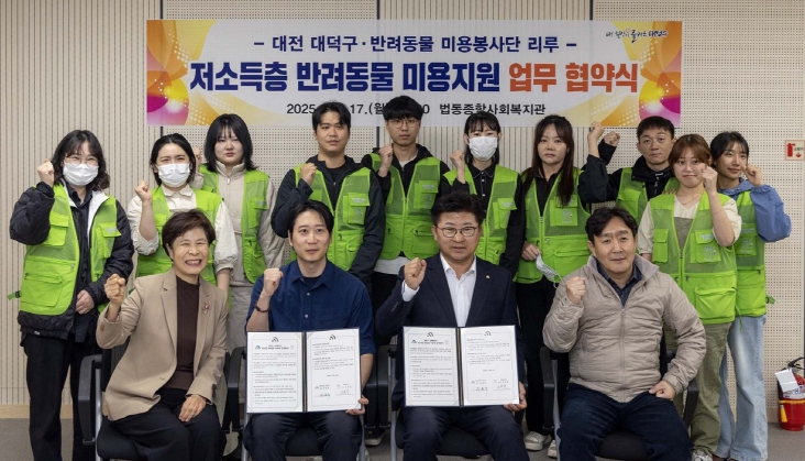 [뉴스노크=김인호 기자] 대전 대덕구는 17일 반려동물 미용봉사단 ‘리루’(단장 서주영)와 저소득 주민의 반려동물 미용지원을 위한 업무협약을 체결했다고 밝혔다.