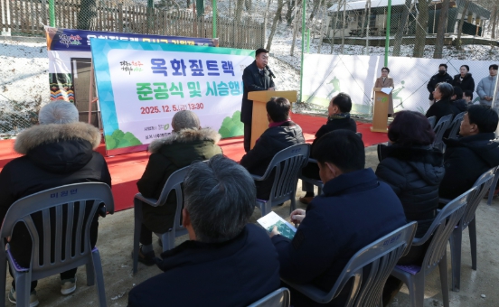 [뉴스노크=김인호 기자] 청주시는 5일 상당구 미원면 옥화자연휴양림(운암옥화길 140)에 산림레포츠 시설인 ‘옥화 짚트랙’을 조성하고 준공식을 개최했다.