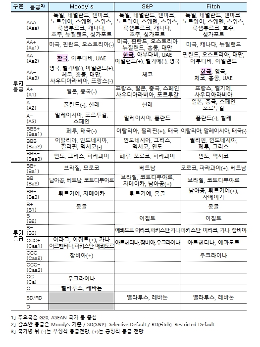 | ▲ 주요국1」 국가신용등급 비교 ('26.1월 기준) |