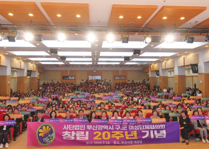 [뉴스노크=김인호 기자] (사)부산광역시 구·군 여성단체협의회는 지난 7월 18일, 부산시청 대강당에서 창립 20주년 기념행사를 성황리에 개최했다. 이날 행사에는 내외 귀빈과 회원 등 1,200여 명이 참석해, 그간의 여성단체 연대와 사회적 역할을 돌아보는 뜻깊은 시간을 가졌다.