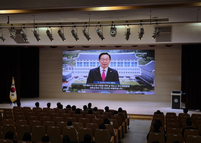 | ▲ 경북교육청, 미래 역량 함양을 위한 ‘2025 초등 진로담당교사 연수’ 개최(2022 개정 교육과정 및 진로연계교육 집중 조명)(영상으로 인사말 전하고 있는 임종식 교육감) |