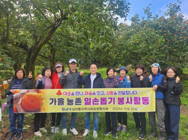 [뉴스노크=김인호 기자] 경산시 남부동지역사회보장협의체(공동위원장 정성극)는 22일 청도읍에 위치한 ‘사랑 나눔 농장’에서 봉사활동으로 감을 수확하여 이웃사랑 실천에 앞장섰다.
