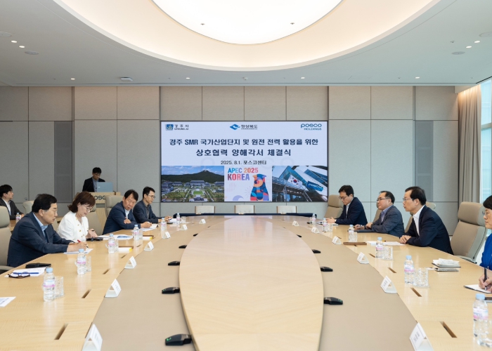 [뉴스노크=김인호 기자] 경주시는 8월 1일 서울 포스코센터 회의실에서 경북도, 포스코홀딩스와 소형모듈원전(SMR) 1호기 경주 유치와 원전전력의 활용 협력을 위한 업무협약을 체결했다.
