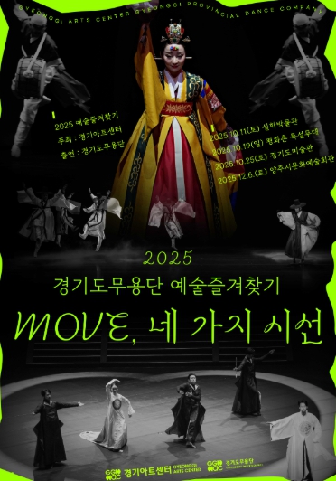 10월 25일 오전 11시와 오후 2시 30분에는 경기도미술관 1층 로비라운지에서 경기도무용단 협력사업으로 진행되는 예술즐겨찾기 〈움직임으로 그리는 춤 전시, 세종〉을 만나볼 수 있다. 이번 공연은 경기도무용단이 2024년 제작한 창작무용극 〈세종〉을 미술관 공간에 맞춰 재구성한 전시형 공연으로, 세종대왕의 내면과 철학, 그리고 백성을 향한 깊은 사랑을 무용의 언어로 시각화했다.