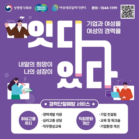 권정현 경기도 고용평등과장은 “경력단절예방은 개인의 문제가 아니라 지역사회와 기업이 함께 풀어야 할 중요한 과제”라며 “이번 경력단절예방주간을 통해 더 많은 도민이 관련 사업을 알게 되고, 경기도의 다양한 경력단절예방사업으로 여성들이 일하기 좋은 환경이 되도록 노력하겠다”고 말했다.