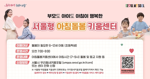 또한, 야간뿐만 아니라 이른 아침 시간대의 돌봄 공백 해소에도 나선다. 서울시는 지난 1월부터 기존 25개소였던 ‘서울형 아침돌봄 키움센터’를 수요가 높은 지역 위주로 5개소 늘려 총 30개소로 확대했다. 운영 시간은 등교 전인 오전 7시부터 9시까지이다.
