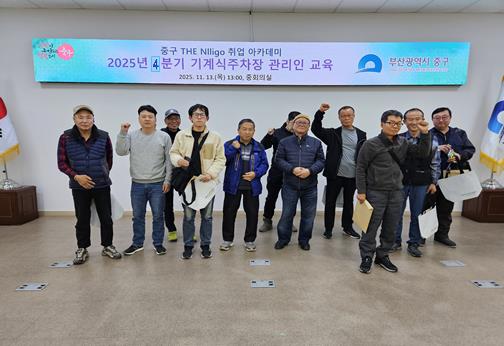 [뉴스노크=김인호 기자] 부산 중구는 지난 13일 ‘2025년 중구 THE Nlligo 취업아카데미 기계식주차장 관리인 교육’ 4분기(신규) 교육 과정에서 13명의 수료생을 배출했다.