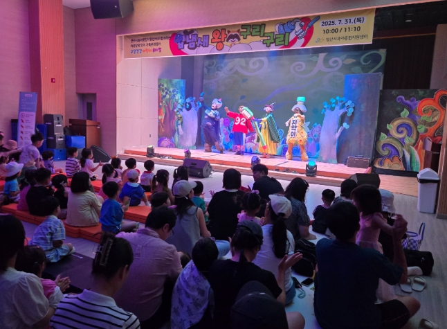 [뉴스노크=김인호 기자] 양산시육아종합지원센터는 여름방학을 맞아 관내 영유아 가정을 대상으로 어린이 뮤지컬 ‘입 냄새 왕 구리구리’공연을 31일 두 차례에 걸쳐 성황리에 마쳤다고 밝혔다.