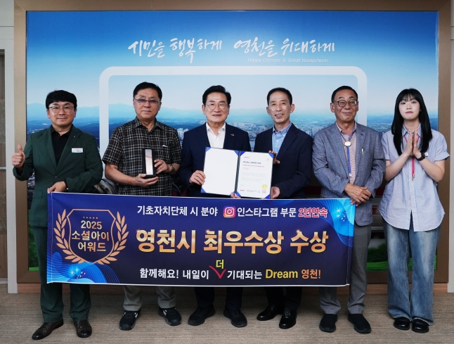 [뉴스노크=김인호 기자] 영천시는 한국인터넷전문가협회(KIPFA)에서 주최한 ‘소셜아이어워드(i-AWARD) 2025’ 기초자치단체 시 분야 인스타그램 부문에서 최우수상을 수상했다고 29일 밝혔다.