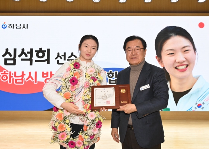 특히 최근 막을 내린 2026 밀라노-코르티나담페초 동계올림픽에서 대한민국 쇼트트랙 여자 3,000m 계주 금메달을 획득한 하남시민 심석희 선수에 대한 감사장 수여식이 진행돼 큰 박수를 받았다. 이에 심 선수는 “열렬히 맞이해 주신 하남시민 여러분께 감사를 드린다”며 “앞으로도 하남시민으로서 더욱 노력하겠다”고 소회를 밝혔다.
