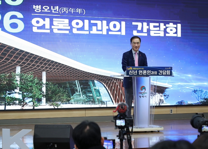 [뉴스노크=김인호 기자] 평택시가 2026년 병오년을 맞아 신년 언론인 간담회를 19일 열어 새해 주요 시정 방향을 밝혔다. 이번 간담회에는 100여 명의 언론인과 정장선 평택시장을 비롯한 간부 공무원이 참석했으며, 주요성과 발표, 2026년 주요 시책 설명, 질의응답 순으로 진행됐다.
