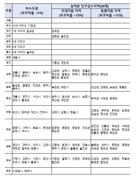 ▲ 지방기업 우대 분류표