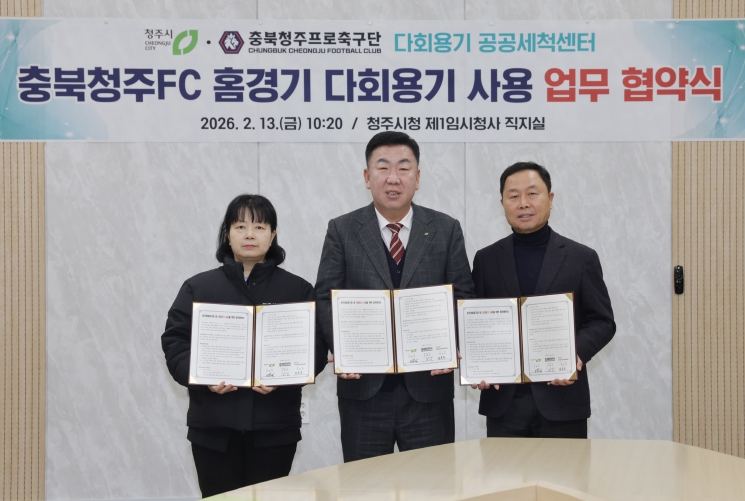 협약에 따라 청주시와 충북청주 프로축구단, 다회용기 공공세척센터는 2026년 시즌 예정된 충북청주 프로축구단 홈경기 16경기에서 다회용기 사용한다.