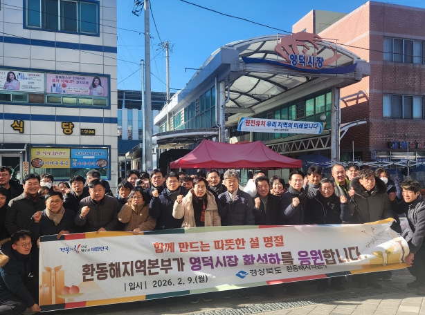 [뉴스노크=김인호 기자] 경상북도 환동해지역본부는 2월 9일, 2021년 화재로 전소된 영덕전통시장의 재건축 완료 및 재개장을 기념해 설맞이 장보기를 실시했다. 이번 행사는 대형 화재로 삶의 터전을 잃었던 상인들을 위로하고, 새롭게 출발하는 영덕시장의 도약을 응원하기 위해 마련됐다.