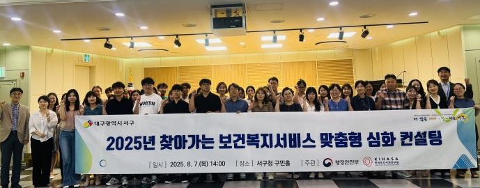 [뉴스노크=김인호 기자] 대구 서구청은 지난 7일, 구청 구민홀에서 행정안전부 및 한국보건사회연구원 주관으로‘찾아가는 보건복지 서비스 맞춤형 심화 컨설팅’을 실시했다.