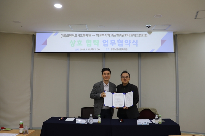 [뉴스노크=김인호 기자] 의정부도시교육재단은 1월 15일 의정부시학교운영위원회네트워크협의회와 ‘지역 내 교육 자원 및 교과연계형 도시교육 사업 발굴을 위한 업무협약’을 체결했다고 밝혔다.