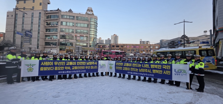 [뉴스노크=김인호 기자] 남양주시는 13일 새마을교통봉사대 남양주시지대(대장 나용자)가 금곡삼거리 일원에서 2026년 새해 첫 ‘교통안전문화 정착을 위한 교통안전 캠페인’을 실시했다고 밝혔다.