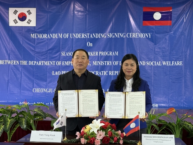 [뉴스노크=김인호 기자] 청주시는 4일(현지시간) 라오스 노동사회복지부와 외국인 계절근로자 도입을 위한 업무협약(MOU)을 체결했다.
