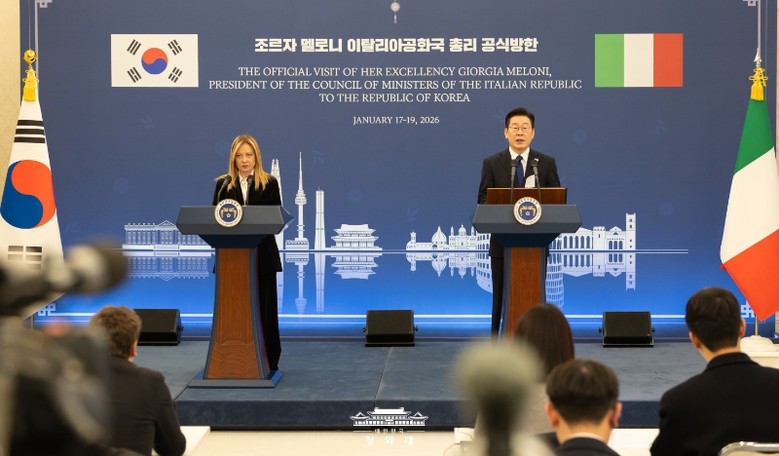 [뉴스노크=김인호 기자] 이재명 대통령은 19일 조르자 멜로니 이탈리아 총리와의 정상회담 뒤 "저와 멜로니 총리는 전략적 동반자 명칭에 부합하는 미래지향적 수준으로 양국 관계를 더욱 발전시켜 나가기로 합의했다"고 밝혔다.