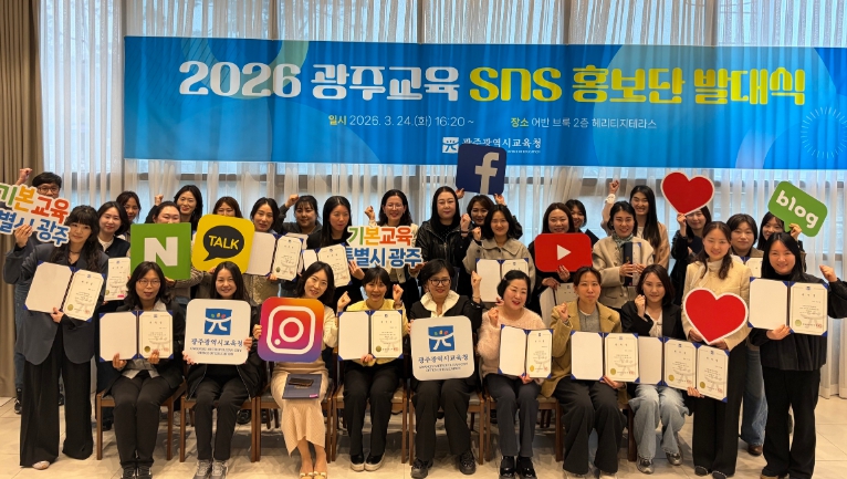 [뉴스노크=김인호 기자] 광주시교육청은 24일 남구 어반브룩에서 학부모 29명, 교직원 6명 등 35명으로 구성된 ‘2026 광주교육 SNS 홍보단 출범식’을 갖고 본격 운영에 들어갔다.