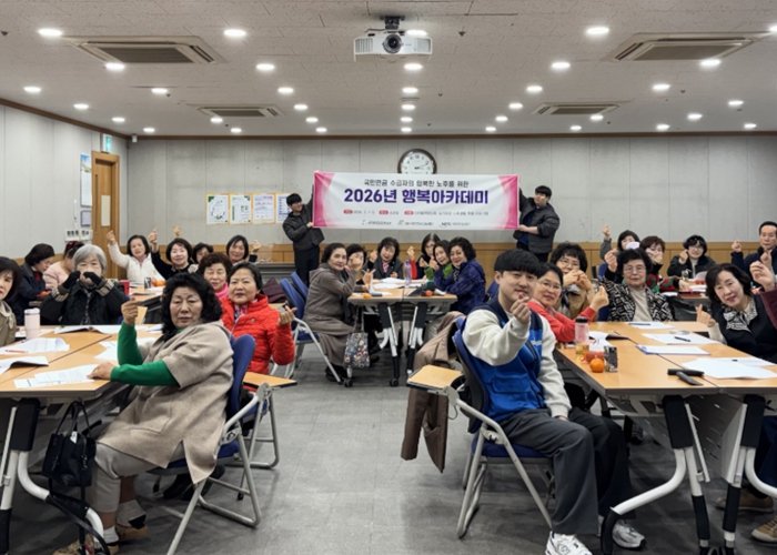 ‘행복아카데미’는 은퇴 이후의 안정적이고 의미 있는 노후생활 지원을 목표로 하는 국민연금나눔재단 후원 사업이다. 노후 준비 교육(재무, 건강, 여가, 대인관계)을 중심으로 ▲선배시민교육 ▲웰다잉 교육 ▲힐링그린미술 ▲디지털 리터러시 교육 ▲자조모임 ▲나들이 등 약 7개월간 총 29회의 프로그램이 운영될 예정이다.