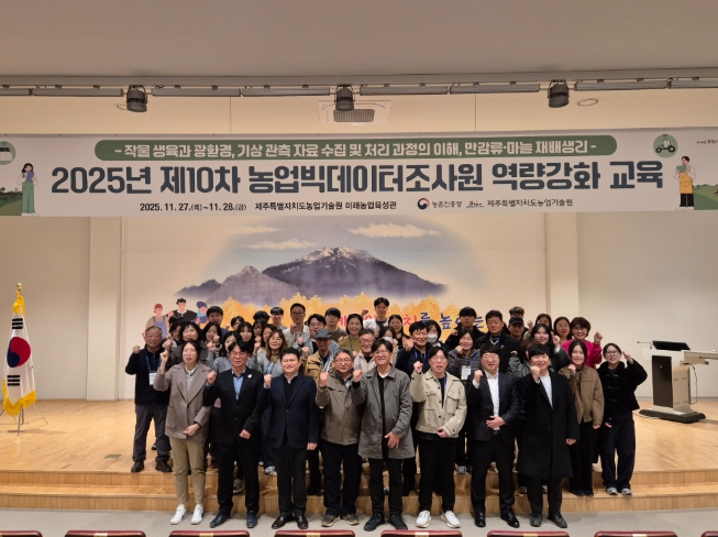 [뉴스노크=김인호 기자] 제주특별자치도 농업기술원(원장 고상환)이 27일부터 28일까지 미래농업육성관 대강당에서 ‘2025년 농업빅데이터조사원 역량강화 교육’을 연다.