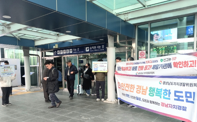 [뉴스노크=김인호 기자] 경상남도자치경찰위원회는 설 연휴를 앞둔 11일 창원중앙역에서 귀성객과 도민을 대상으로 범죄예방 홍보 캠페인을 펼쳤다.