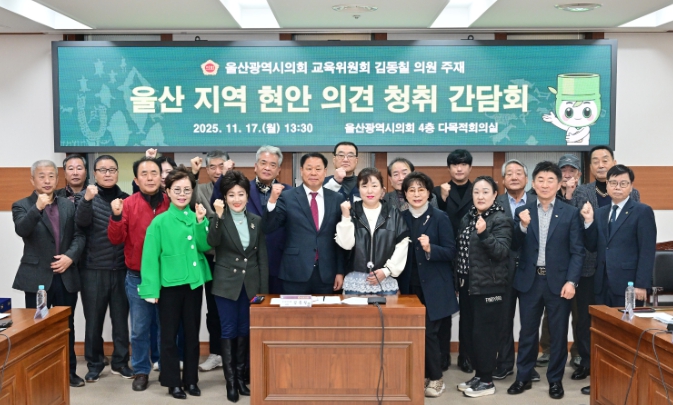 [뉴스노크=김인호 기자] 울산광역시의회 김동칠 의원(교육위원회, 달동ㆍ수암동)은 11월 17일 오후, 시의회 4층 다목적회의실에서 ‘지역현안 의견청취를 위한 간담회’를 열고, 현재 울산 및 남구에서 발생하는 현안에 대해 논의했다.