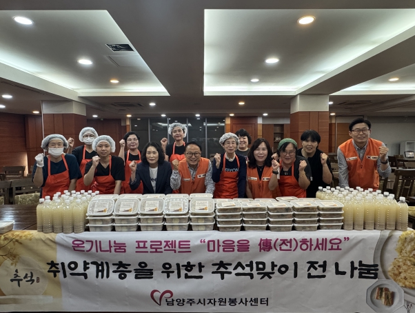 [뉴스노크=김인호 기자] 남양주시자원봉사센터는 추석맞이 집중 주간을 맞이하여 9월 25일부터 오는 10월 3일까지 약 1,300명의 관내 취약계층을 대상으로 ‘추석맞이 전 나눔 활동’을 펼쳤다.