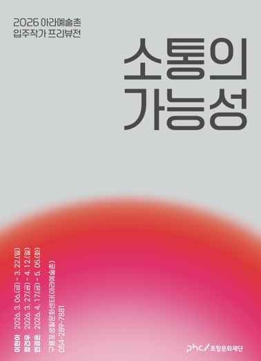 [뉴스노크=김인호 기자] 포항문화재단은 3월 6일부터 5월 5일까지 아라예술촌에서 입주작가 프리뷰전 ‘소통의 가능성’을 개최한다.