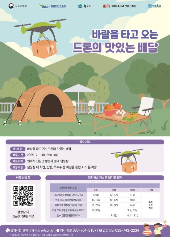 해당사업은 국토교통부 공모 ‘2025년 드론실증도시 구축사업’으로 선정된 과제로, (재)원주미래산업진흥원, 관내 드론기업 캣츠(KATS)와 컨소시엄을 구성해 공동 추진하고 있다.