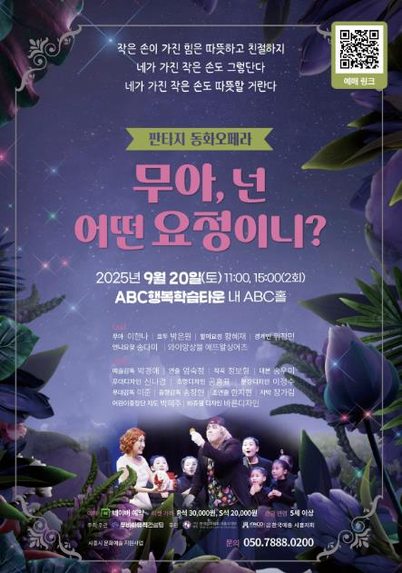 [뉴스노크=김인호 기자] 시흥시가 ‘2025년 지역문화예술 활성화’ 사업의 하나로 지원하고 두비아뮤직컨설팅에서 주최ㆍ주관하는 판타지 동화 오페라 ‘무아, 넌 어떤 요정이니?’가 오는 9월 20일 오전 11시와 오후 3시, 총 2회에 걸쳐 시흥ABC행복학습타운 ABC홀에서 열린다.