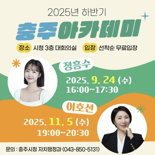 한편, 올해 마지막 충주아카데미로 11월 5일 오후 7시, 시청 3층 대회의실에서 이호선 교수 초청 특강을 마련한다.