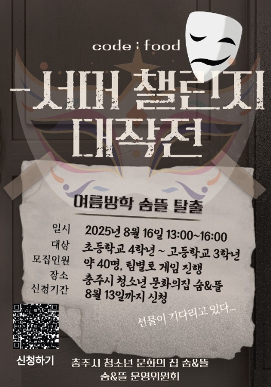 참가를 원하는 청소년은 충주시청소년문화의집 숨·뜰 누리집 혹은 로 문의하면 된다.