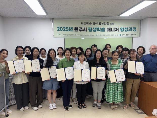 [뉴스노크=김인호 기자] 원주시 평생교육원 학습관은 지난 9일 ‘2025년 원주시 평생학습 매니저 양성과정’ 수료식을 개최했다.