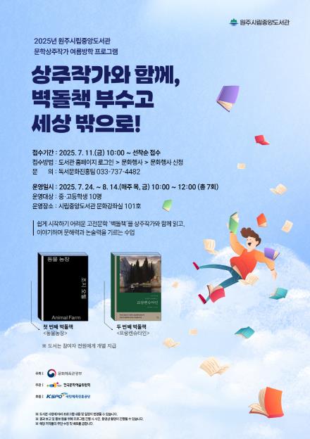 [뉴스노크=김인호 기자] 원주시립중앙도서관은 오는 24일부터 ‘2025년 문학상주작가와 함께하는 청소년 여름방학 프로그램’을 운영한다.