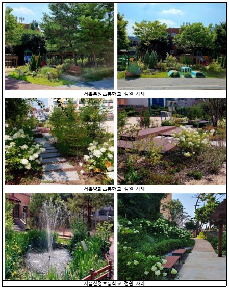 올해 '치유정원' 사업에 선정된 학교는 '꿈을 담은 교실' 총 20개교 중 9개교(청계숲유치원, 서울녹천초, 서울청계초, 서울공진초, 서울사당초, 서울신상도초, 구룡중, 옥정중, 서울정인학교)이며, 총 29억1천9백만원을 지원할 예정이다.