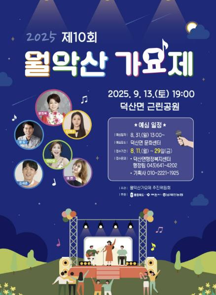 월악산 가요제 추진위원회 관계자는 “가요제를 통해 월악산 자락에 위치한 덕산의 아름다움과 우리 전통가요를 널리 알려 덕산 홍보와 지역경제 활성화에 한몫을 톡톡히 해내는 행사로 만들도록 노력하겠다”고 전했다.