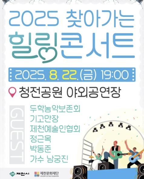 [뉴스노크=김인호 기자] 제천시는 오는 8월 22일 저녁 7시, 새롭게 정비를 마친 청전야외공연장에서 2025년 찾아가는 힐링콘서트를 개최한다고 밝혔다.