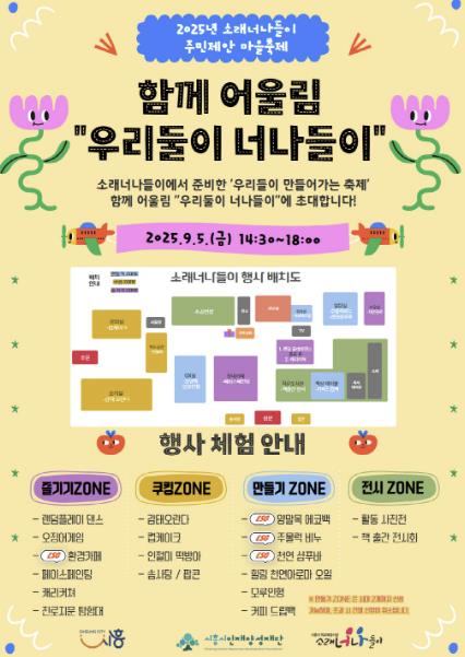 소래너나들이센터는 앞으로도 주민주도형 프로그램을 통해 지역사회 교류와 세대 간 소통의 장을 확대해 나갈 계획이다. 더불어 원도심 활성화와 주민 공동체 회복에 기여할 수 있도록 다양한 주민참여형 축제를 이어갈 예정이다.