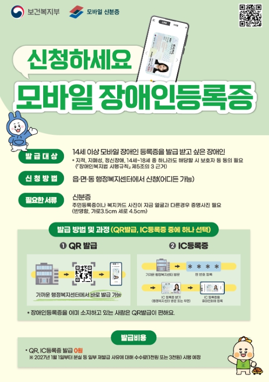 군 관계자는 “모바일 장애인등록증은 디지털 기술을 활용해 장애인의 이동과 생활 편의를 높이기 위한 제도”라며 “앞으로도 장애인의 권익 향상과 복지 서비스 접근성 강화를 위해 지속적으로 노력하겠다”고 말했다.